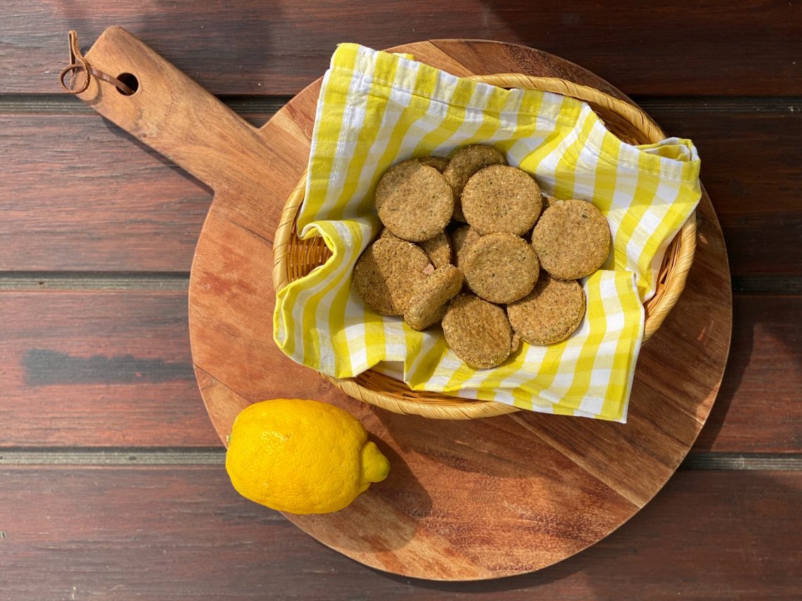 Върху хартия за печене с точилка, разстлах равномерен лист (около 5мм) от тестото. Аз използвах ракиена чашка, за да отрежа малки кръгчета, които заедно с хартията за печене директно преместих в голяма тава.