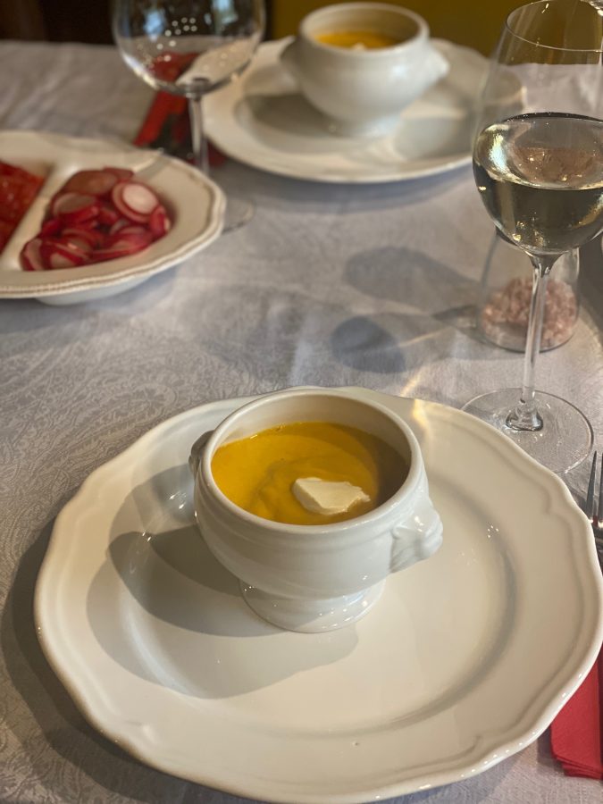 Измих старателно морковите и ги сварих в подсолена вода. Отцедих ги, но запазих малко от водата. Блендирах морковите още горещи заедно с маслото, млякото и сметаната. Ето така приготвих най-лесната и вкусна супа на света с френски маслен полъх. Бон апети!