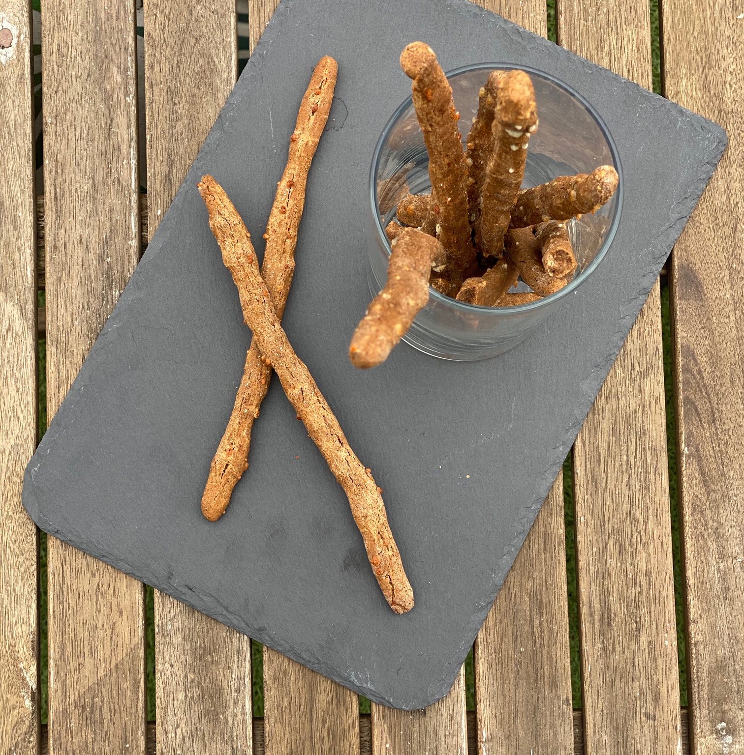 On a baking paper I spread a sheet (about 5 mm) from the dough using a rolling pin. Then I used a brandy cup to cut small circles, which I moved directly into a large baking tray together with the baking paper.